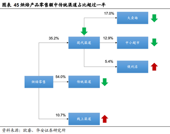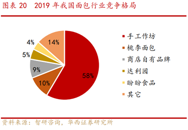在面包这个细分领域,目前手工作坊占据了过半市场份额。随着消费者品牌意识提升,行业集中度有望不断提升。