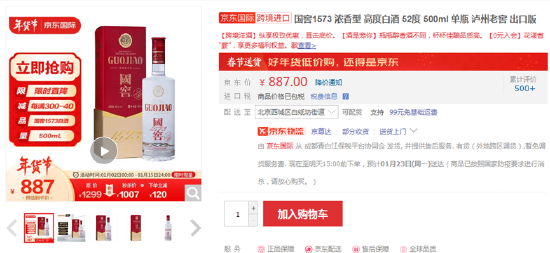 就在11月底, 泸州老窖电子商务股份有限公司刚刚因京东“多次低价销售(泸州老窖)52度国窖1573系列产品” ,而宣布暂停与京东的合作。根据消费者之前的截图爆料,双十一前后,叠加各种优惠折扣后京东平台到手价曾低至908元,几乎接近批价。目前京东887元的价格比批价还低13元。