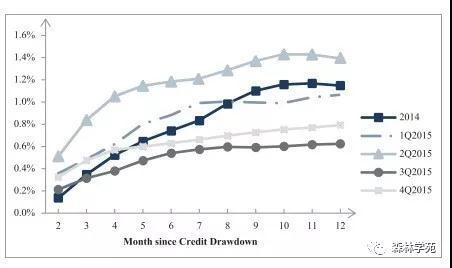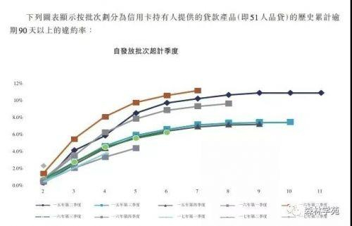 上图中乐信的每一条曲线,比如2015Q1, 2015Q2,2015Q3不同时间段下的逾期情况。