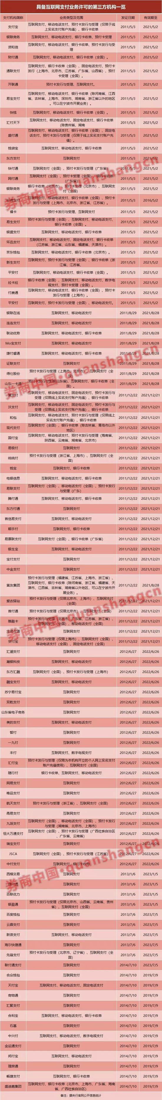 据央行官网公开的支付机构许可及续展信息,券商中国不完全统计,截至目前,具备互联网支付业务许可(含全国范围)的第三方机构数量仅102张: