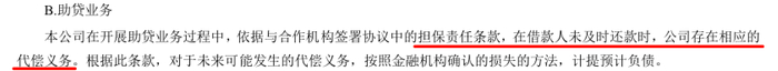 我们在母公司奥马电器2018年财报中找到了相关描述:本公司在开展助贷业务过程中,依据与合作机构签署协议中的担保责任条款,在借款人未及时还款时,公司存在相应的代偿义务。