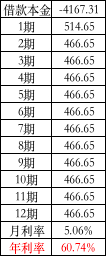 根据还款账单,使用利息/本金的基础公式得出年利率为35.53%,但通过IRR公式计算真实年利率则高达60.74%,远高于法律保护的24%上限。