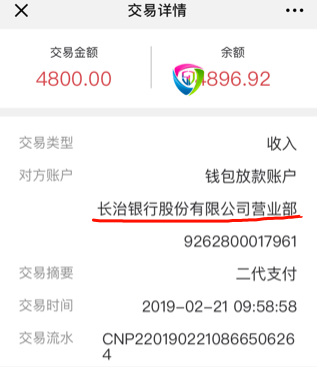 该费用属于钱包小贷的收入,但会先划入长治银行账户作为借款人无法还款后的代偿资金,也就坐实了钱包小贷在变相为长治银行提供担保。