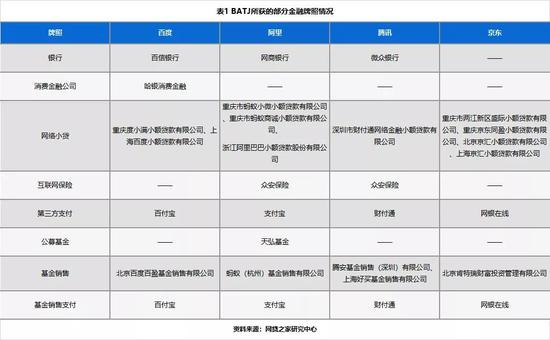 从BATJ目前已获得的金融牌照来看,