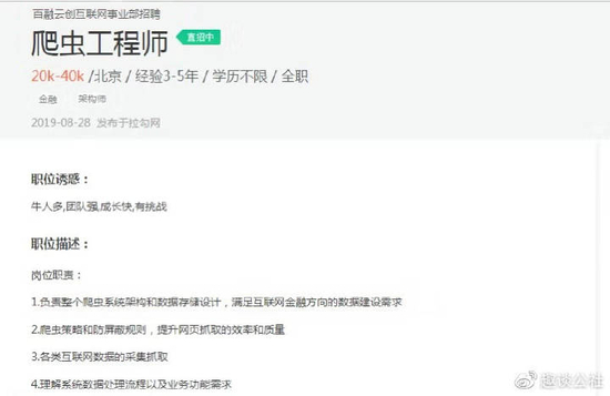 数据公司接连被查 多家平台仍高薪招聘爬虫工程师