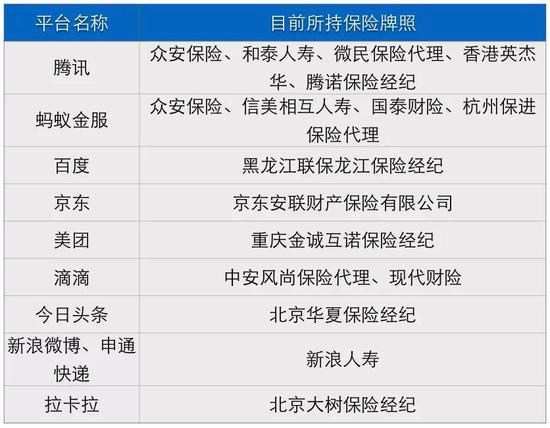 互联网平台目前所持保险牌照一览