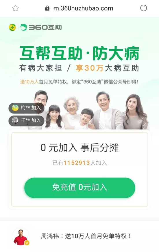 今年6月,360推出了类相互宝的网络互助产品“360互助”。该互助计划覆盖了100种重疾、30种轻疾以及身故。作为类保险业务的一种,上线该互助计划被认为是360金融涉足保险业务的信号之一。近日有消息称,360金融旗下“360互助”上线三个月用户已突破100万。