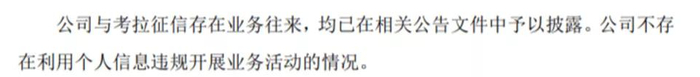 拉卡拉称,公司与考拉征信存在业务往来,均已在相关公告文件中予以披露。公司不存在利用个人信息违规开展业务活动的情况。
