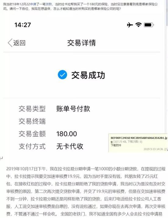 实际上,易分期的套路除了保证金名义的“砍头息“,还有保险、加速审核费等,大量借款人被套路后投诉无门,而易分期的同意回复则是,无论是保险还是审核费,均属借款人自愿缴纳。