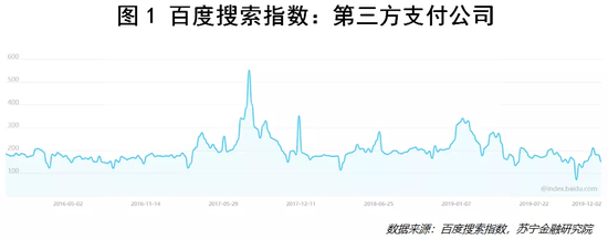 以百度搜索指数对于“第三方支付公司”的热度,更能看出市场对于支付公司关注的热度(见图1)。