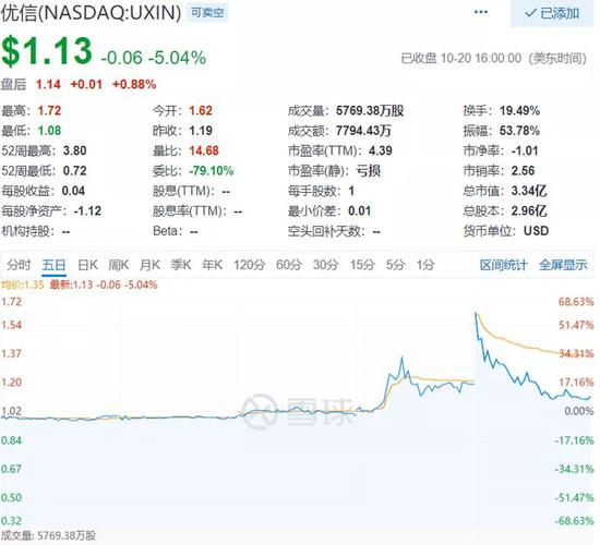优信(NASDAQ:UXIN)同样如此,19日从1美元涨到1.39美元,暴涨39%,收盘回落至1.19美元;20日最高涨到1.72美元,但随后一路跌到1.13美元,从最高点到最低点幅度47%!