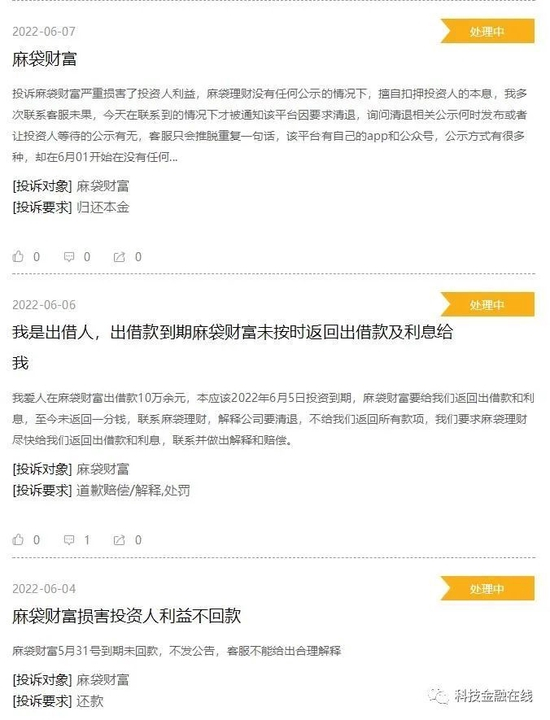近日,多名出借人在社交平台上投诉他们在麻袋财富的出借款到期,平台却未按时返回出借款和利息。