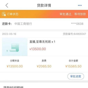 此外,小李还透露,在按照贷款申请填写信息之后,随即贷款成功,她也收到海尔消金的短信通知,短信内容为“您在2022年5月16日申请的135600元贷款已经通过”,不过并没有注明贷款原因是什么。根据小李提供的另外一张截图显示,该笔贷款的用途为:直播,至尊无忧班。