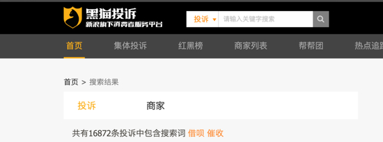 以“借呗催收”为关键词搜索,可以搜索到16872条投诉。