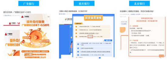从2023年第一季度开始,以工银理财为代表的机构推出了“T+0.5”理财产品,随后北银理财、广银理财等多家机构陆续跟进,如下图所示: