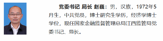 金融监管总局新疆监管局局长赵巍调任江西监管局局长