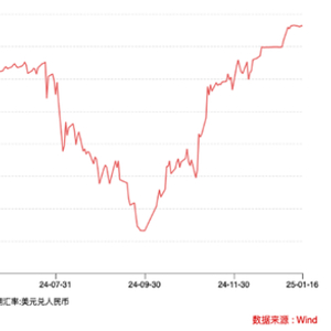 2024年12月以来,各期限国债收益率加速下行。其中,10年期国债收益率从1.9%附近迅速下行至1.6%附近,叠加美国债利率上行,推动中美利差走阔至3个百分点以上,令人民币汇率承压。1月10日,人民币汇率贬至7.3326,创2023年9月以来新低。