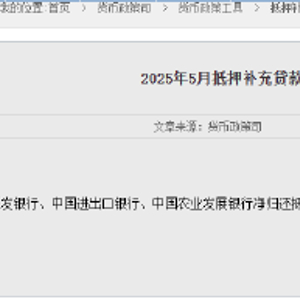 6月3日金融一线消息,央行今日发布2025年5月抵押补充贷款开展情况:2025年5月,国家开发银行、中国进出口银行、中国农业发展银行净归还抵押补充贷款2700亿元。5月末,抵押补充贷款余额为17939亿元。