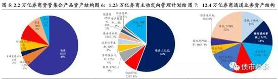 从各资管产品底层资产的分布结构看,理财、券商集合资管、券商定向主动产品以标准化资产为主,非标资产占比不足20%;而信托、券商通道业务和基金子公司以非标资产为主,非标准化资产占比超过80%。具体而言: