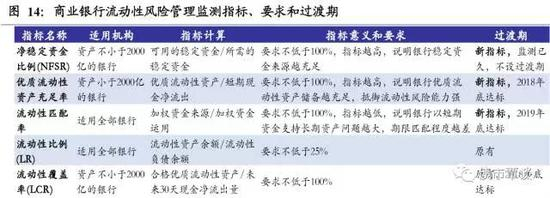 2017年12月6日,银监会发布《商业银行流动性风险管理办法(修订征求意见稿)》,此次修订的主要内容包括:第一,新引入3个量化指标,即净稳定资金比例、优质流动性资产充足率、流动性匹配率,其中,净稳定资金比例适用于资产规模在2000亿元(含)以上的商业银行,优质流动性资产充足率适用于资产规模在2000亿元以下的商业银行,流动性匹配率适用于全部商业银行。与已有的流动性比例、流动性覆盖率一起,成为银行流动性风险的监管指标。第二,进一步完善流动性风险监测,对部分监测指标的计算方法进行优化。第三,细化了流动性风险管理相关要求,如日间流动性风险管理、融资管理等。