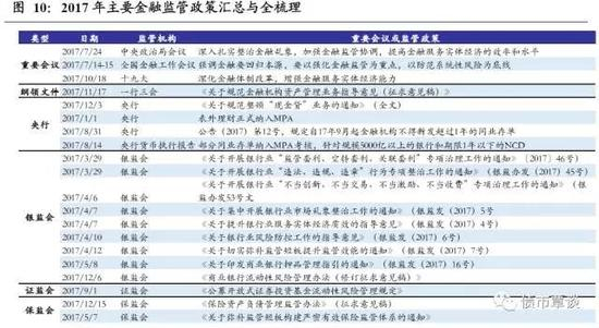 下文中,我们试图对2017年的重要金融监管政策进行全面梳理,分析各政策对流动性、债市、银行、大类资产等领域的影响,有利于投资者回顾和把握金融严监管下的政策思路和市场方向。