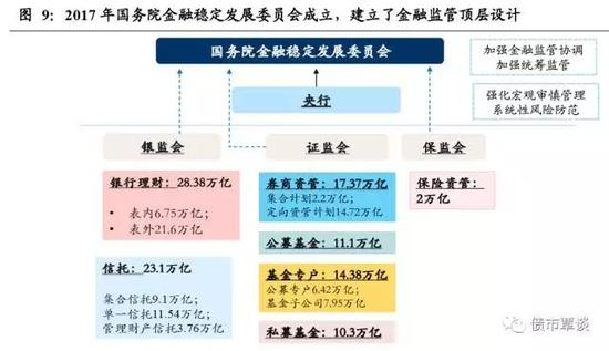 严监管和防风险是贯穿2017年全年的关键词。过去5年在大资管快速膨胀过程中,各方金融监管也呈现竞相放松之势,业务、产品、结构和通道创新层出不穷,跨部门、跨行业进行监管规避和套利。但2017年国务院金融稳定发展委员会成立,标志着对金融统筹监管和监管协调建立了顶层设计,各方监管也开始竞争性紧缩,发布一系列严厉政策,致力于化解资管领域金融风险。