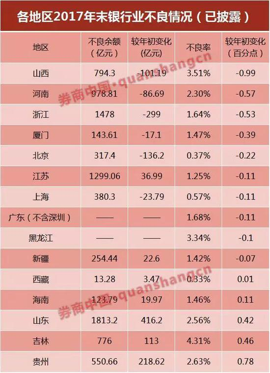 反观东北、西南、山东等地,地区银行业资产质量恶化的局面依旧未见好转,吉林、山东等三个省不良率上升,拖累净利润下降。