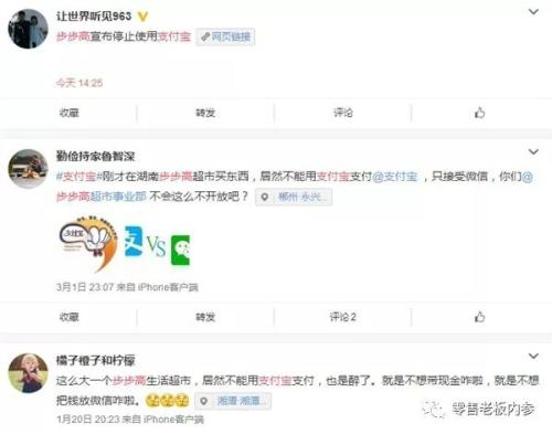 无论是沃尔玛,还是步步高,禁止使用支付宝,只能用微信支付,说到底还是利益使然,不过是利益攻守同盟的选择。