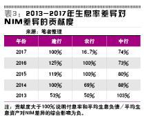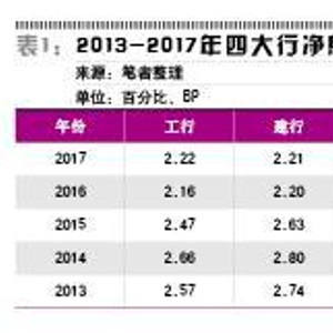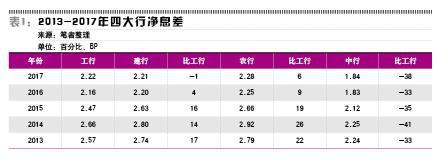 净息差(NIM)是商业银行的重要盈利指标,体现银行的核心获利能力。银行净息差受宏观经济、货币政策、利率政策等外部宏观环境因素影响。假设外部宏观环境对四大行的影响相同,笔者以工行、建行、农行和中行2017年年报披露数据为分析主线,同时参考近5年数据,重点分析银行资产负债管理、业务禀赋等内部因素对净息差的影响。