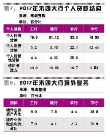 在境内贷款业务规模占比方面,工行偏重公司贷款,建行偏重个人贷款;收益率方面,2017年,工行公司贷款收益率高于建行,但近5年数据显示,工行并未形成稳定的定价优势;建行个人贷款收益率稳定高于工行,近5年数据显示,建行比工行高约20个基点。且值得注意的是,2017年,建行个人贷款收益率历史性逆转高于公司贷款收益率,建行年报解释因将个人信用卡分期调整为非生息资产。据笔者了解工行口径与建行可比,工行未见个人贷款收益率高于公司贷款的趋势。鉴于此,建行个人贷款规模及收益率优势明显而稳定,在紧缩周期、利率上行趋势下,工行宜顺势而为,培育公司贷款定价的稳定优势,形成工行公司贷款业务的核心竞争力,与建行个人贷款优势抗衡。