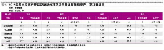 平均计息负债与平均生息资产的比值,四大行基本相同且保持稳定,例如2017年四大行该指标为0.92左右。因此,生息率和付息率是影响净息差的两项重要因素。生息率是生息资产项下客户贷款及垫款、债券投资、存放中央银行款项、存放和拆放同业和其他金融机构款项的综合收益率,付息率是计息负债项下存款、同业及其他金融机构存放和拆入款项和已发行债务证券的综合成本率。