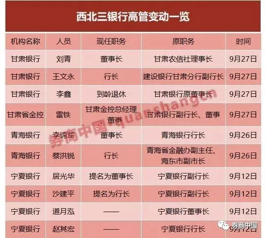 西北三银行换帅 宁夏银行打破成立来铁娘子掌舵传统