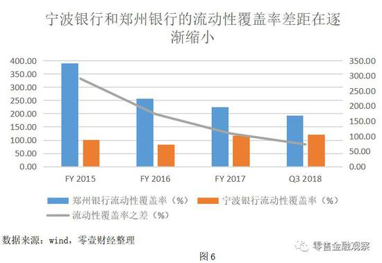 高杠杆也对银行的流动性管理水平提出了更高的要求。观察流动性覆盖率这一反映银行流动性管理水平的指标可以发现,虽然截至2018年3季度末,宁波银行在该指标上仍与郑州银行存在差距,但2015年至今,该指标在两行间呈逐渐缩小之势。