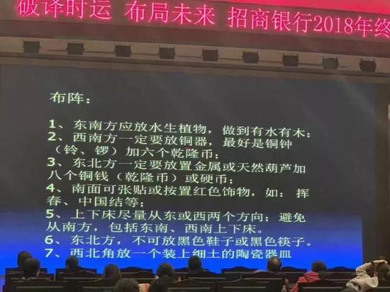 事实上,风水在金融领域是存在一定市场空间,而招商银行也是众多机构中的典型代表之一。除了内部对风水颇为讲究之外,在金融业,请风水师为客户讲课成为行业惯例。