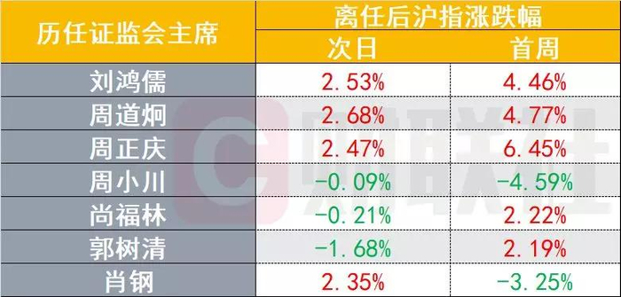 从上证指数涨跌幅情况来看,周道炯是任期内涨幅最大的证监会主席,高达83.33%;跌幅最大的是周小川,跌幅累计为13.27%。