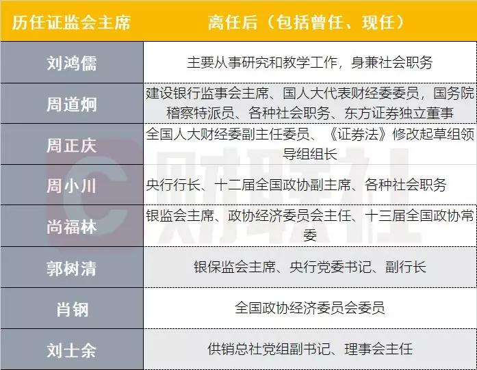 财联社发现,除银行系背景外,历任证监会主席还有两个共同点。