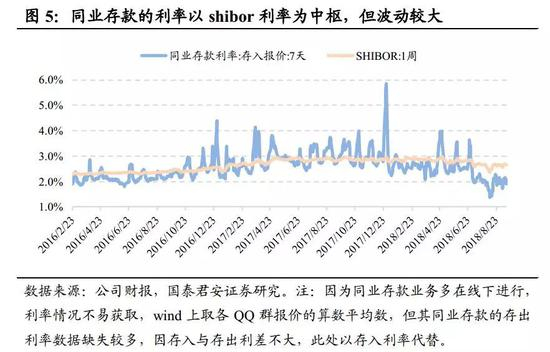 存放同业利率以shibor报价为基准浮动一定点差形成,但因为透明度低和冲存款时点的原因而波动更大。本质上其价格与金融机构自身业务成本或匹配的资产收益挂钩。在实际操作过程中相同金额、期限的同存与拆借利率之间可能存在较大差距,尤其是资金面紧张时。