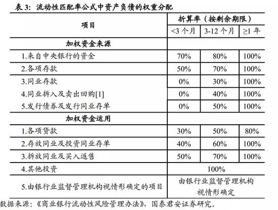 3、新增流动性监管指标,配置非标资产将对其造成较大压力。2018年5月,银保监会颁布《商业银行流动性风险管理办法》(简称流动性新规),较过去的流动性管理要求增加了一项关键指标——流动性匹配率必须在2020年1月1日之前达到100%(公式:加权资金来源/加权资金运用×100%),目的是降低银行的负债与资产的期限错配程度。