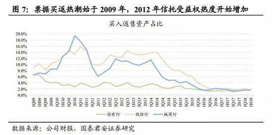 票据买入返售主要模式是在大型国有银行和中小银行之间合作,模式为“大行签票—中小行贴现—转贴现给大行”。随着2008年央行推出ECDS电票系统之后,票据市场迎来了大发展。但是,票据贴现的利率比贷款低,却还占用信贷规模和资本,所以衍生出了各种转贴现业务模式“创新”,将票据资产转化为同业资产规避信贷规模管制、降低资本消耗和拨备监管压力,并发展成为分别以农信社、信托和券商资管为不同通道的三种模式。