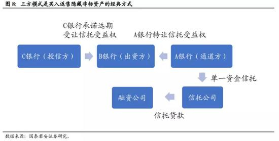 第二阶段(2011-2013年)类信贷的模式:为节约资本,银行将信贷资产包装为同业资产,以“三方买入返售”为代表的模式兴起。