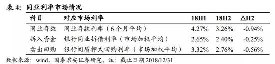 对同业业务的分析框架了解后,我们在此进行一项实例分析:将2018H2市场利率下行对计息负债成本率的影响程度,做一个简单的静态测算;该思路也是上市银行盈利预测中的重要环节。
