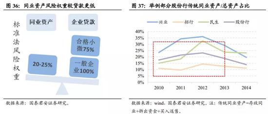 参与表内非标业务的银行,在该模式下可以处于B银行或C银行的位置,所以我们可以看到,在2011-2013年,这些银行的买入返售资产规模和财务咨询类中间收入增速都很快。