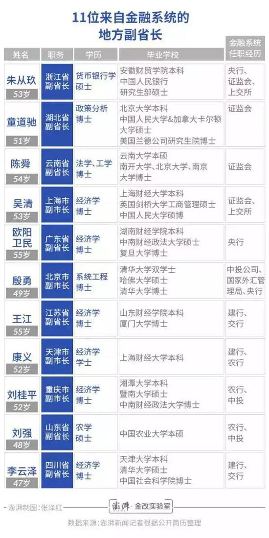 这个也是在网上找到挑2018年的新闻,里面有统计各个“金融副省长”的出身,再次验证了要从政,你得是名校出身的大学霸,最好还是博士:
