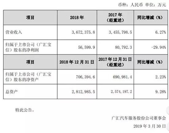 根据广汇汽车披露的公告,2018年全年,广汇宝信实现归属于上市公司股东的净利润5.66亿元,同比下滑29.94%。