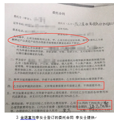 新浪金融曝光台查看了李女士提供的贷款文件,发现一份“委托合同”颇为可疑。