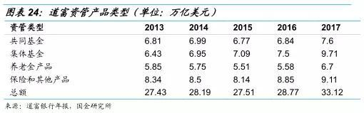 摩根大通——综合资管代表。摩根大通的资管产品种类齐全,以主动型为主,费率相对较高,其拥有丰富的资管产品,包括共同基金,对冲基金,指数投资等,能够为客户提供优质的服务。摩根大通成功原因有三点:金融集团发挥部门之间相互融通协调作用;高度重视金融风险;通过扩大规模、提高服务来提升品牌效应。