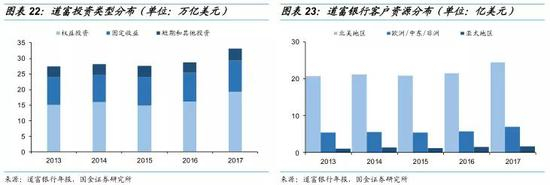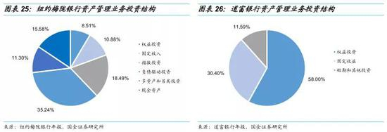 道富银行的资管策略非常鲜明,专注于被动型权益投资,其权益投资占全部资管规模50%以上。其次为固定收益投资,占30%左右。