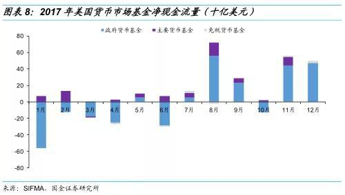 现金管理类投资是指对短期闲置资金进行管理的理财方式,一般可以随时变现,流动性较强,类似活期储蓄,现金管理类的投资标的主要是货币市场基金。2017年美国货币基金市场净流入1,070亿美元,其中760亿美元流向货币基金,300亿美元流向政府货币基金。