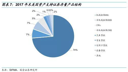 固定收益类投资品种的风险相比权益类更小,收益更为稳定。21世纪以来,美国MBS和ABS均实现了跳跃式发展。截止2017年末,机构担保的MBS占美国资产支持证券存量的74%,是固定收益品种中一类重要的投资标的。