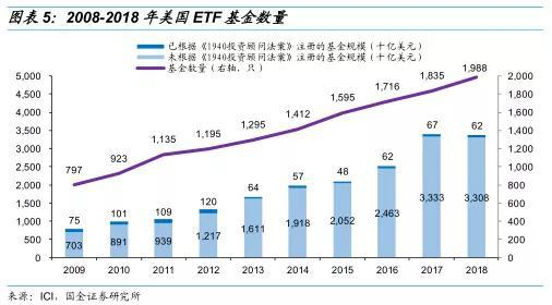 同时美国也是全球最大的ETF市场,截止2017年底其规模达到3.4万亿美元,占全球规模4.7万亿美元的72%。美国的EFT绝大部分都是在SEC登记注册,遵循《1940投资顾问法案》,受SEC监管。截止2017年底只有2%的ETF未在SEC登记注册,这些ETF主要投资于商品、货币以及期货。